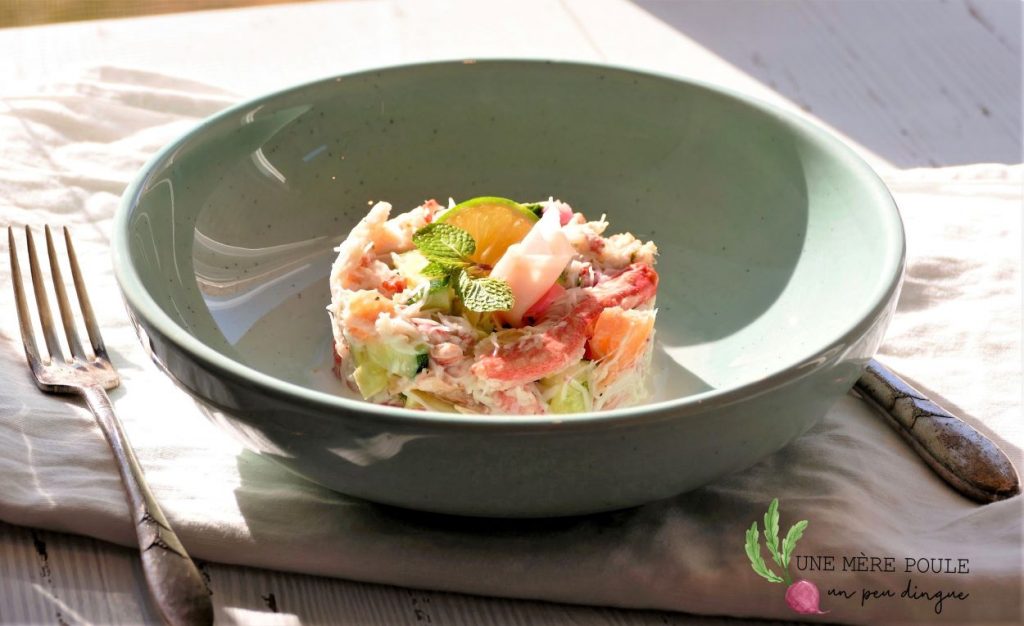 Faux-tartare de crabe au pamplemousse et au gingembre mariné