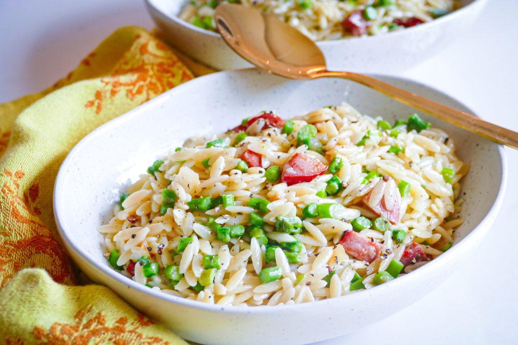 Orzo crémeux aux asperges et au chorizo