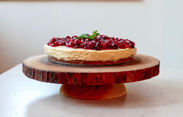 Gâteau mousse à la mandarine et canneberge sur croûte de spéculoos