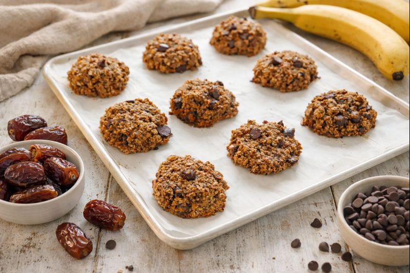 Biscuits aux dattes, banane, flocons d’avoine et pépites de chocolat sans sucre ajouté