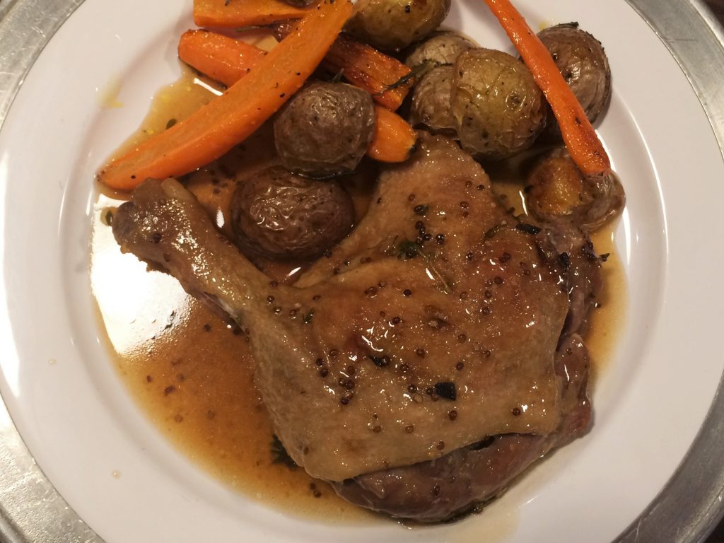 Canard braisé à la bière, au sirop d’érable et à la moutarde à l’ancienne